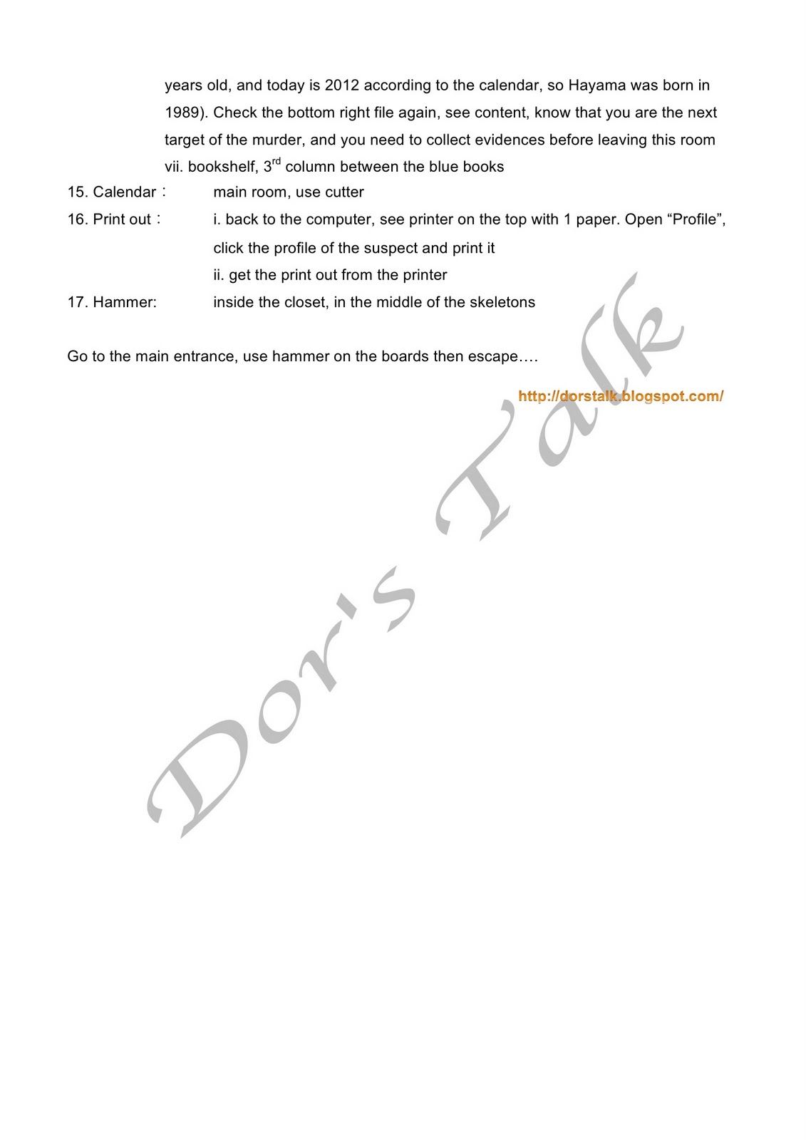 提示話兇手鐘意的人同主角同一星座 (即 Pisces), 疑兇剩下 Aoi Honda 及 Natsumi Niimi, 而根據左下檔案顯示,Otani 同 Mizushima 生日期同兇手暗戀既人數字相同,所以 Aoi Honda 係最有嫌疑 ....